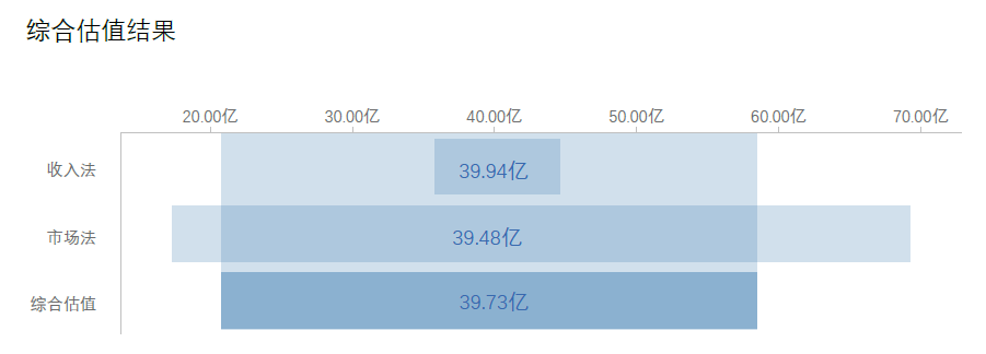企业全部股权的公平市场价值指的是在企业的全部所有权被合理定价时的价值。模估智能将企业信息结合宏观、市场、行业等数据,综合采用收入法和市场法确定的公司全部股权的估值为39.73亿元,合理的估值范围为20.8亿~58.6亿元。