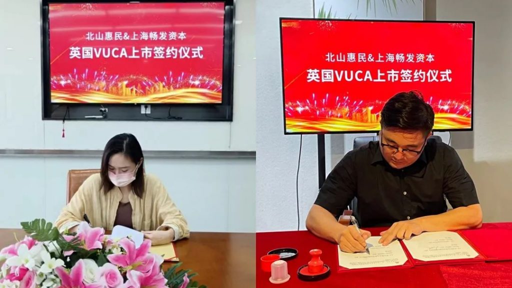 2022年7月12日,北山惠民与上海畅发资本举行英国VUCA Board上市线上签约仪式,正式启动英国上市进程。